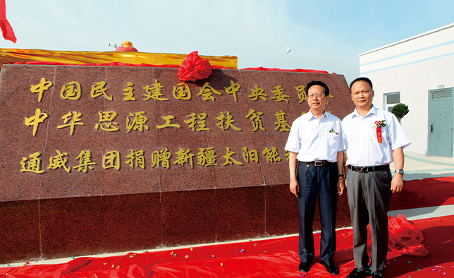 在獲得自身穩健發展的同時,通威集團始終堅持以一個成功企業的高度社會責任感,情系民生,飲水思源 用真情和愛心回饋社會各界的厚愛,積極參與社會公益事業、光彩事業和思源工程。迄今為止,通威集團 各種捐款捐物總額已超過6億元人民幣。