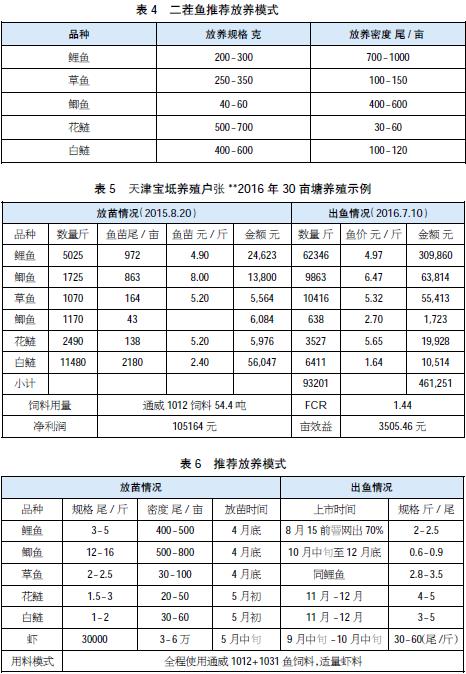 “直出魚”是天津寶坻、武清地區養殖戶習慣叫法,是指每年6-8月放養較小規格魚種,次年6-8月達到上市規格,此時通常魚價相對較高。該模式也采用草、鯉混養或鯉、草、鯽混合放養,吃食魚密度達2000尾/畝,由于飼養周期較長,全程使用中檔次飼料,飼料系數低。