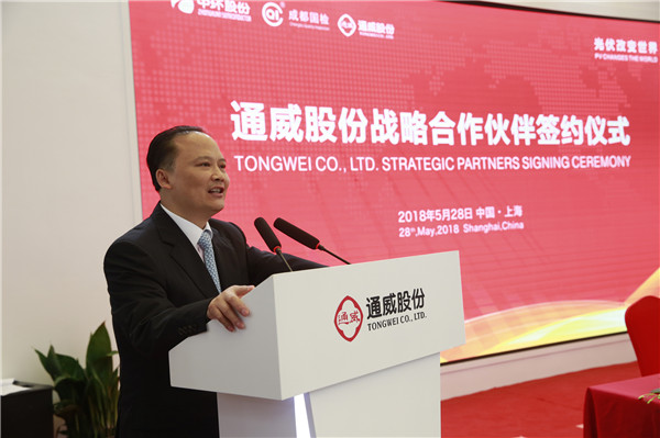 5月28日,通威股份戰略合作伙伴簽約儀式在通威展臺W5-310成功舉行。期間,通威股份與中環股份、通威太陽能與成都(國家)質檢院分別正式簽訂戰略合作協議。簽約儀式上,劉漢元主席在致辭中指出,中國光伏產業經過十余年的發展,一路追趕、超越,成為了全球最大、成本最低、技術總體領先的生產第一大國。中環股份是中國單晶棒、單晶硅片、半導體產業方面的龍頭企業,雙方在戰略聯合、專業分工、優勢互補、合作共贏等方面達成了高度共識,希望行業同仁們能背靠背、手拉手,一路參與行業競爭,共同打造綠色產業與商業生態,通力協作樹立行業發展典范。相信通過大家的共同努力,一定能讓各自的優勢發揮得更好,讓行業發展得更健康。