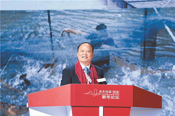 2018年12月23日,主題為“美好中國:敢當與前行”的第二十屆北大光華新年論壇在京隆重舉行,本次論壇旨在致敬改革開放40年,展望發展新愿景。北京大學黨委書記邱水平,全國政協副主席、民革中央常務副主席鄭建邦,財政部原副部長朱光耀,北京大學光華管理學院院長劉俏,北京大學光華管理學院黨委書記馬化祥,北京大學光華管理學院名譽院長厲以寧等領導、經濟學專家、企業家,以及北大光華900余名校友共同出席。十一屆全國政協常委、全國人大代表、通威集團董事局劉漢元主席應邀出席并作主題演講。