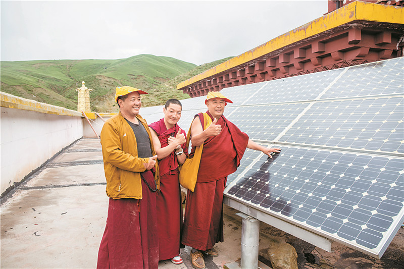 通威在理塘縣雄壩鄉(xiāng)若拉村建設(shè)的光伏電站,持續(xù)向周邊牧民和寺院無償提供清潔電力,有效解決了當(dāng)?shù)赜秒婋y的問題