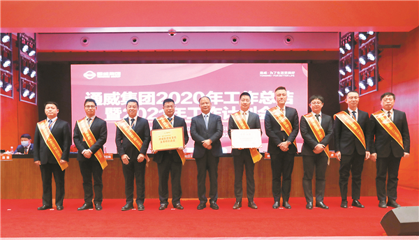 會上同時還頒發了“2020通威股份年度新銳獎”、“股份優秀分子公司總經理”、“股份總部優秀部門”、“股份優秀片區總經理”、“股份效益貢獻獎”、“股份銷量突破獎”、“2020執行力十佳標桿公司”、“2020通威年度英雄團隊”等獎項。