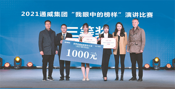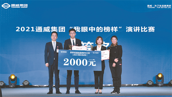 11月30日,以“表率是最好的領導方法”為主題的2021通威集團“我眼中的榜樣”主題演講比賽暨頒獎盛典在通威國際中心隆重舉行。四川省廣播電視學會播音主持專委會會長、成都市語言藝術協會藝術顧問李蓉,成都電視臺《東周社》主講人、中國播音主持界最高榮譽“電視主持人金話筒獎”獲得者、成都市全民閱讀推廣形象大使周東,四川電視臺節目主持人、成都市語言藝術協會副秘書長海光,十一屆全國政協常委、全國人大代表、通威集團董事局劉漢元主席,通威集團禚玉嬌總裁,通威股份謝毅董事長、郭異忠總裁,以及集團、股份總裁辦相關領導出席活動,集團、股份管理總部,農牧板塊、新能源板塊、相關多元板塊各分、子公司管理團隊及員工代表參會。四川電視臺主持人楊林擔任盛典主持。