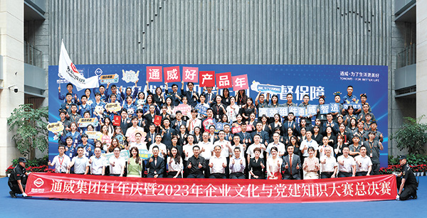 企業文化與黨建知識大賽總決賽現場,通威農發、永祥股份、通威太陽能(電池)、通威太陽能(組件)、通威新能源、通威食品、集團相關多元板塊共7支參賽隊伍參賽。經過激烈角逐,通威太陽能(電池)團隊榮獲一等獎;通威農發團隊榮獲二等獎;通威新能源團隊榮獲三等獎;永祥股份團隊、通威太陽能(組件)團隊、集團相關多元團隊、通威食品團隊獲得優秀獎。