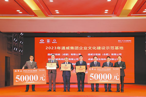 作為2023年企業(yè)文化亮點活動,通威在全集團范圍內(nèi)開展年度企業(yè)文化示范基地的評選。通威太陽能(成都)有限公司、通威太陽能(合肥)有限公司、云南通威高純晶硅有限公司、成都通宇物業(yè)管理有限公司、成都通威生物科技有限公司獲評“2023年度通威集團企業(yè)文化建設(shè)示范基地”。盛典現(xiàn)場還對“效率優(yōu)先 陽光正向 監(jiān)督保障”主題征文獲獎作品進行表彰。永祥股份龍小龍榮獲一等獎、通威太陽能成都公司徐嘉等2人榮獲二等獎、通威農(nóng)發(fā)張子顏等3人榮獲三等獎;通宇物業(yè)馮小蓉等10人榮獲優(yōu)秀獎。