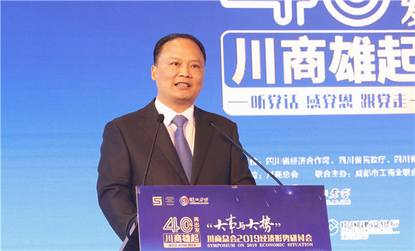 劉主席指出,當前,民營經濟發展迎來了又一個春天,黨中央、國務院和四川省委、省政府適時提出相關舉措、出臺系列政策、實施具體行動,為民營企業家暖心提氣、定心定神,為民營企業的發展減輕了負擔、掃平了障礙,為民營經濟鼓足干勁。作為改革開放的見證者、參與者和受益者,一大批川商經歷了一件又一件“大事”,把握了一次又一次“大勢”,并最終伴隨著四十年浪潮成長起來。今天,大家共同探討2019年經濟新形勢、新機遇,希望大家能夠暢所欲言,共話經濟趨勢,共商川商建設,共謀家鄉發展,不忘初心回首四十年,牢記使命改革再出發。未來,川商總會也將與全球川商一道,高舉愛黨愛國愛家鄉旗幟,堅定信心、抓住機遇、勇迎挑戰,著力構建全球川商共建共享的價值平臺和精神家園,為服務川商、服務家鄉經濟社會發展貢獻更多的力量,用實際行動為祖國70周年華誕獻禮,為四川經濟社會發展作出新的更大貢獻!