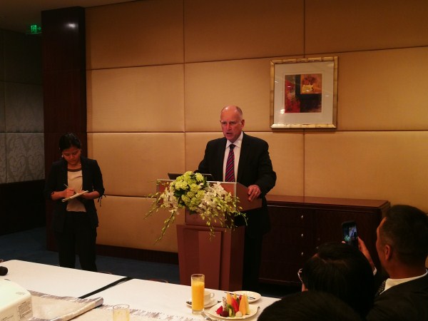 布朗州長在發(fā)言中談到,他非常高興來到四川,希望能進一步加深四川與加州在旅游、農(nóng)業(yè)、科技、高校等更多方面的合作交流。布朗州長指出,此行最重要的目的是參加第八屆清潔能源部長會議和第二屆創(chuàng)新使命部長級會議,2014年,中美兩國政府針對減少溫室氣體的排放簽署了協(xié)議;2015年,中國又成為了《巴黎協(xié)定》最重要的締約國之一。因此,中國無論在減少溫室氣體排放還是發(fā)展可再生清潔能源方面,都在全球具有舉足輕重的地位。
