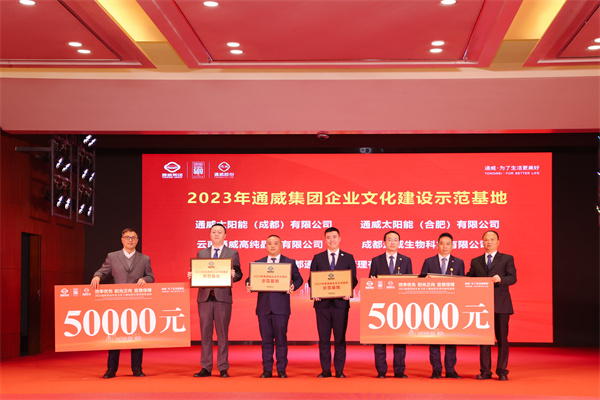 作為2023年企業文化亮點活動,通威在全集團范圍內開展年度企業文化示范基地的評選。以“組織及制度保障體系”“視覺傳播界面”“企業文化宣傳體系”“培訓宣貫工作”“企業文化主題活動”五個維度為評選標準,通威太陽能(成都)有限公司、通威太陽能(合肥)有限公司、云南通威高純晶硅有限公司、成都通宇物業管理有限公司、成都通威生物科技有限公司獲評“2023年度通威集團企業文化建設示范基地”。