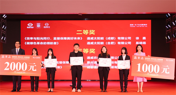 經過激烈的比拼,永祥股份孫揚、通威太陽能雙流基地鄒涵予榮獲一等獎;永祥股份張雨竹、通威太陽能雙流基地李旭冉、通威農發陳可欣榮獲二等獎;連云港通威苗時雨、永祥股份張棟梁、通威太陽能彭山基地趙淦、通威微電子張宇、通威食品吳旋瑀榮獲三等獎;通威太陽能(組件)鹽城基地雷佳麗、通威農發余曉龍、通威新能源翁佳妮、四川威爾檢測唐瑤、通威太陽能(組件)鹽城基地王曉燕、通威新能源李璽、通威農發張芝珊、通宇物業熊春曉榮獲優秀獎。