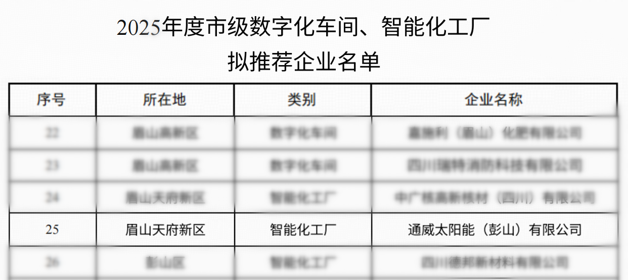 通威太陽能(彭山)有限公司榮獲2025年度眉山市“智能化工廠”榮譽稱號