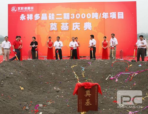 在通威集團十六周年華誕來臨之際的9月19日,由通威集團和四川巨星集團聯(lián)手打造的永祥多晶硅生產(chǎn)基地首期1000噸項目投產(chǎn)典禮暨二期3000噸項目奠基儀式在樂山市五通橋的廠區(qū)內(nèi)隆重舉行。永祥多晶硅生產(chǎn)基地設(shè)計規(guī)模為年產(chǎn)多晶硅1萬噸,項目分三期穩(wěn)步推進,首期年產(chǎn)1000噸的多晶硅生產(chǎn)線的投產(chǎn),標志著通威集團與巨星集團聯(lián)手打造世界級多晶硅生產(chǎn)基地和世界級清潔能源企業(yè)的宏偉戰(zhàn)略首戰(zhàn)告捷,并為隨后即將實施的3000噸和6000噸多晶硅生產(chǎn)線奠定了良好而堅實的技術(shù)基礎(chǔ)、管理基礎(chǔ)和團隊基礎(chǔ),也標志著樂山這一中國“硅谷”的第三個千噸級多晶硅項目正式達產(chǎn),更標志著四川省、樂山市千億級硅材料產(chǎn)業(yè)帶的打造邁上了一個新的臺階,并在實質(zhì)意義上強化了國內(nèi)乃至全球太陽能利用和信息產(chǎn)業(yè)的發(fā)展信心。