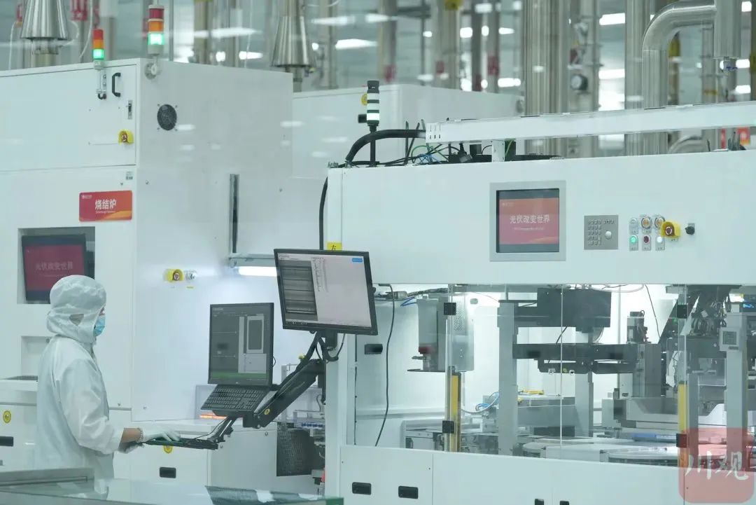 值得一提的是,二期項目8月30日第一臺設備進場,9月16日整線貫通生產(chǎn)、首片電池片下線,整個過程僅用時18天。其間先后遭遇高溫、疫情等不利因素,之所以能夠刷新生產(chǎn)速度,除了“防疫泡泡”等閉環(huán)管理模式,也有5G應用后人工大幅減少、機器自動化生產(chǎn)的助力。疫情之下,無人工廠優(yōu)勢凸顯。