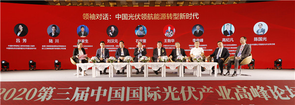 國務(wù)院原參事、中國可再生能源學(xué)會第七、八屆理事長石定寰,中國光伏行業(yè)協(xié)會副理事長兼秘書長王勃華,中國有色金屬工業(yè)協(xié)會副會長、硅業(yè)分會會長趙家生,國家應(yīng)對氣候變化戰(zhàn)略研究和國際合作中心首任主任、中國能源研究會可再生能源專委會主任委員李俊峰,十一屆全國政協(xié)常委、全國人大代表、全國工商聯(lián)新能源商會執(zhí)行會長、通威集團(tuán)董事局劉漢元主席,中國光伏行業(yè)協(xié)會理事長、中國機(jī)電產(chǎn)品進(jìn)出口商會副會長、全球太陽能理事會聯(lián)席主席、天合光能董事長高紀(jì)凡,全國人大代表、中國光伏行業(yè)協(xié)會副理事長、中國電源學(xué)會副理事長、陽光電源董事長曹仁賢,全聯(lián)新能源商會常務(wù)副會長、正泰新能源總裁陸川,華為智能光伏業(yè)務(wù)總裁陳國光,海泰新能董事長王永,圍繞著“中國光伏領(lǐng)航能源轉(zhuǎn)型新時代”主題展開領(lǐng)袖巔峰對話,就“‘十四五’光伏戰(zhàn)略發(fā)展規(guī)劃”、“全球光伏產(chǎn)業(yè)發(fā)展趨勢”、“光伏企業(yè)如何協(xié)調(diào)發(fā)展”、“AI、5G如何賦能光伏”等話題進(jìn)行智慧碰撞。