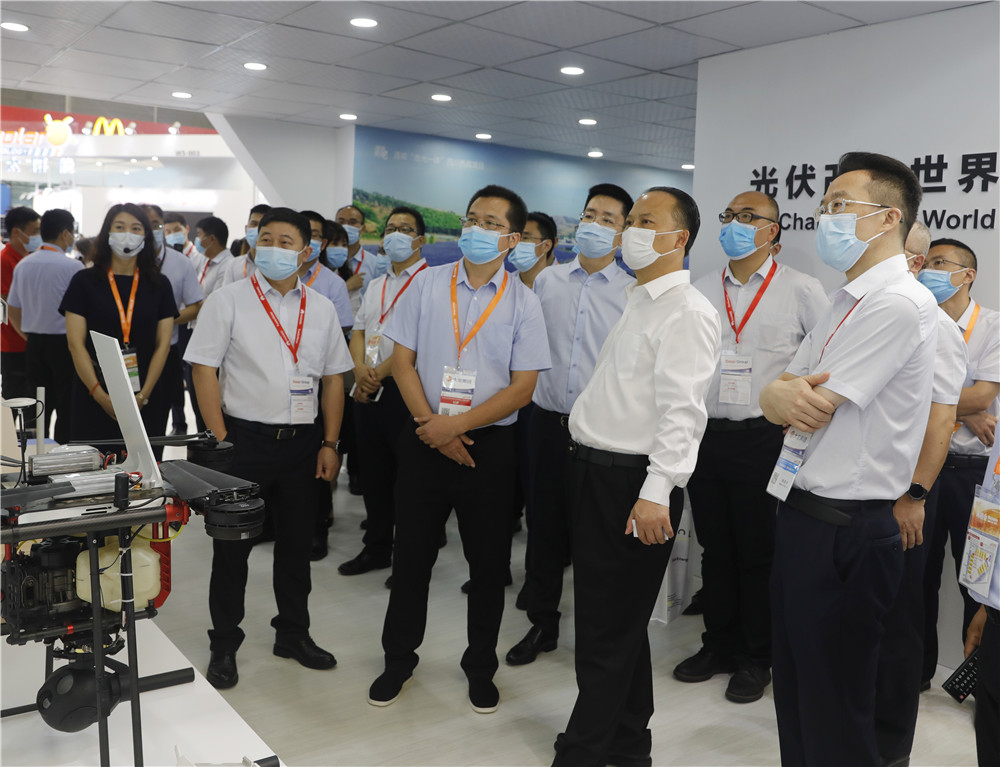 在通威展臺,劉漢元主席仔細查看通威展示產品