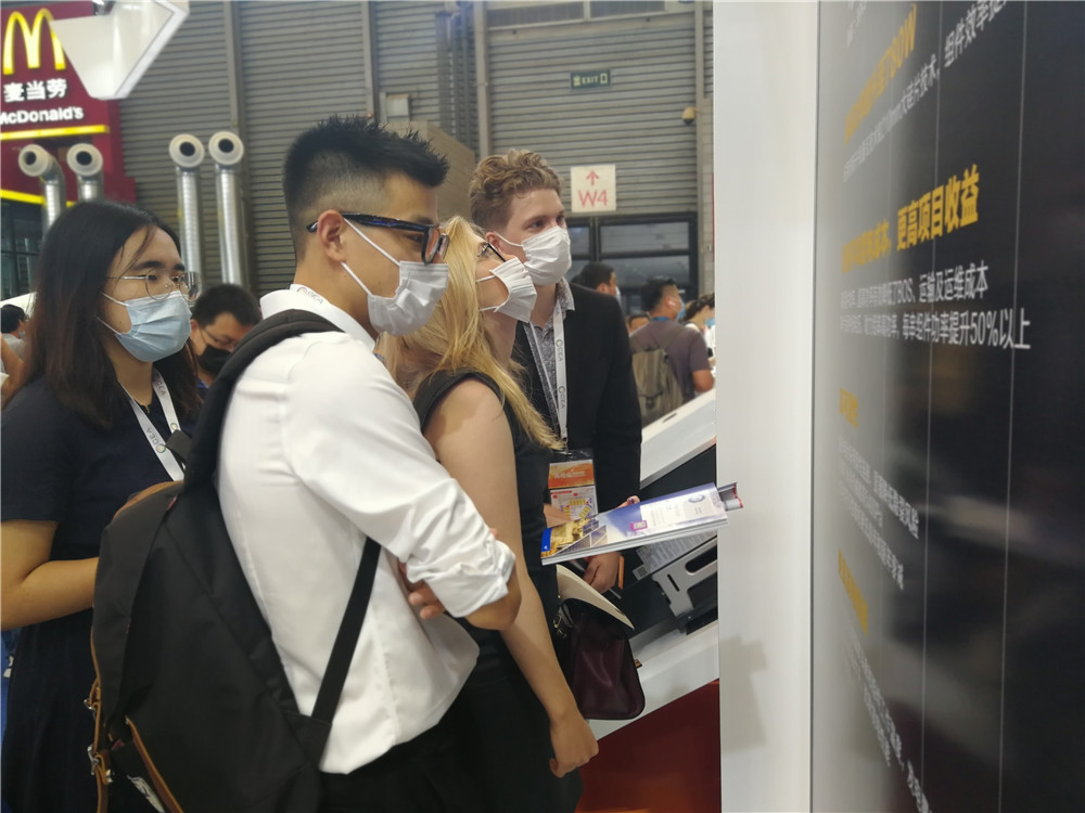 在通威太陽能展臺,不時有參展商前來詢問。通威太陽能專注于電池片技術創新,不斷攻堅克難,本次通威太陽能單晶158.75尺寸、166尺寸、210尺寸疊瓦電池、SHJ等高效電池片精彩亮相,受到中外展商矚目。