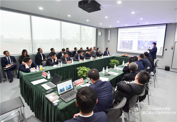 3月26日,2019通威太陽能第二屆全球合作伙伴大會在通威太陽能(成都)有限公司隆重舉行。成都市政協副主席、雙流區委書記韓軼,原國務院參事、中國可再生能源學會第七屆、第八屆理事長石定寰,中國光伏行業協會副理事長兼秘書長王勃華,隆基綠能科技股份有限公司總裁李振國,中環電子信息集團總經理、中環股份董事長沈浩平,陽光電源股份有限公司董事長曹仁賢,無錫先導智能裝備股份有限公司董事長王燕清,江蘇環太集團董事長王祿寶,雙流區政府副區長曾虎,西航港經濟開發區管委會黨工委書記、管委會主任馬駿等領導嘉賓出席。十一屆全國政協常委、全國人大代表、通威集團董事局主席劉漢元,通威集團總裁禚玉嬌,通威太陽能董事長謝毅,通威股份光伏事業部總裁陳星宇,通威股份監事會主席鄧三等通威高管出席,中央電視臺知名主持人劉棟棟擔任主持人,近百家全球頂級光伏企業精英共300余人齊聚蓉城,共同探討行業發展趨勢,共話光伏發展未來。