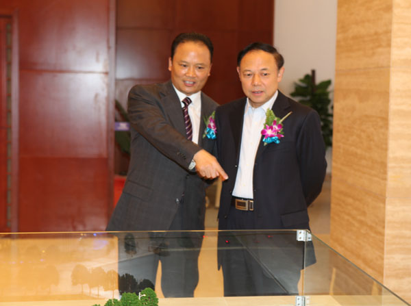 省政府副省長陳文華(右)參觀通威國際中心招商中心